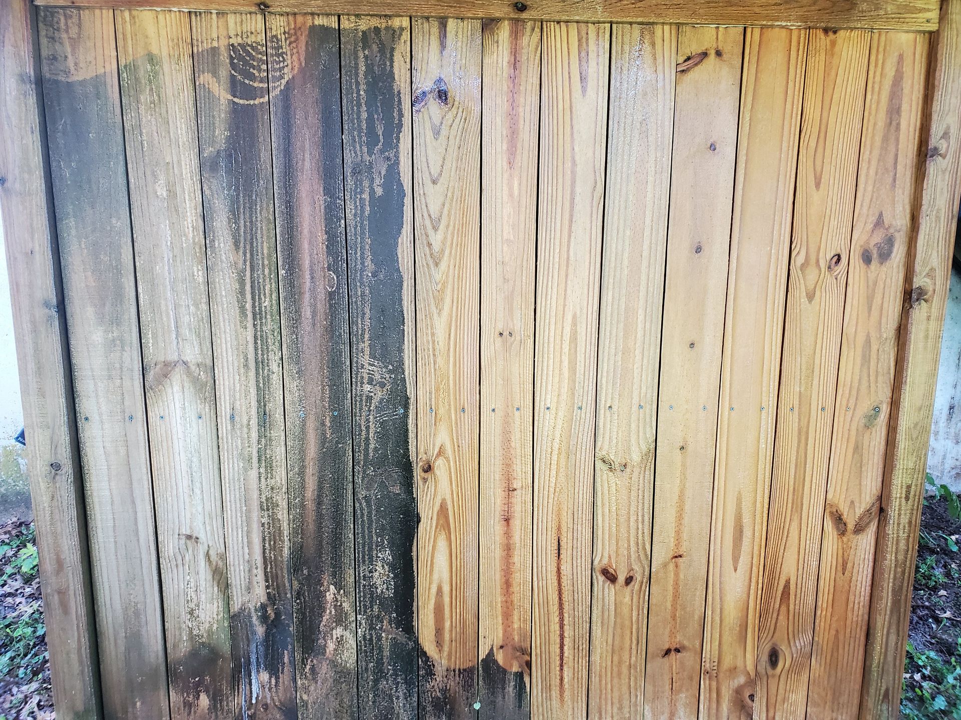Fencing discolors in time, thankfully a light application of restoration agent and a good pressure wash can bring a fence back to almost new again.