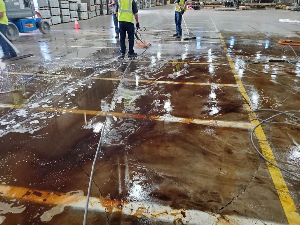If you're dealing with rust stains in your parking lot, loading docks or walkways, we have the solution! Literally, a rust removing solution finished off with a high pressure wash can make concrete look almost new again.
