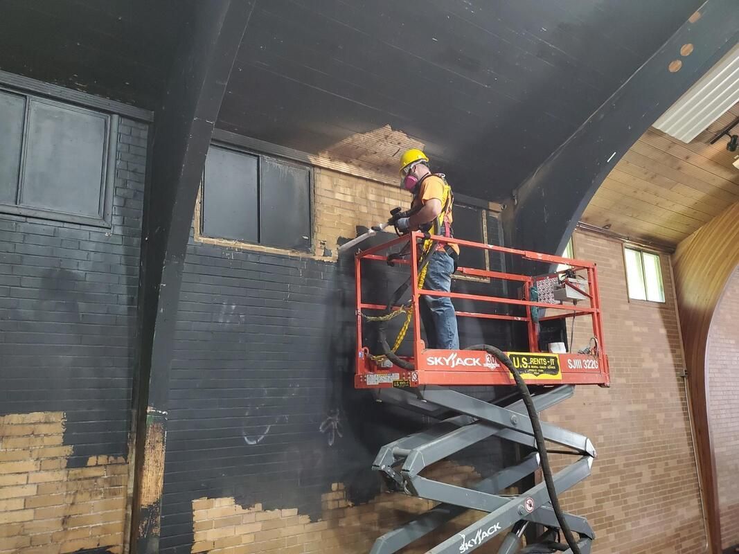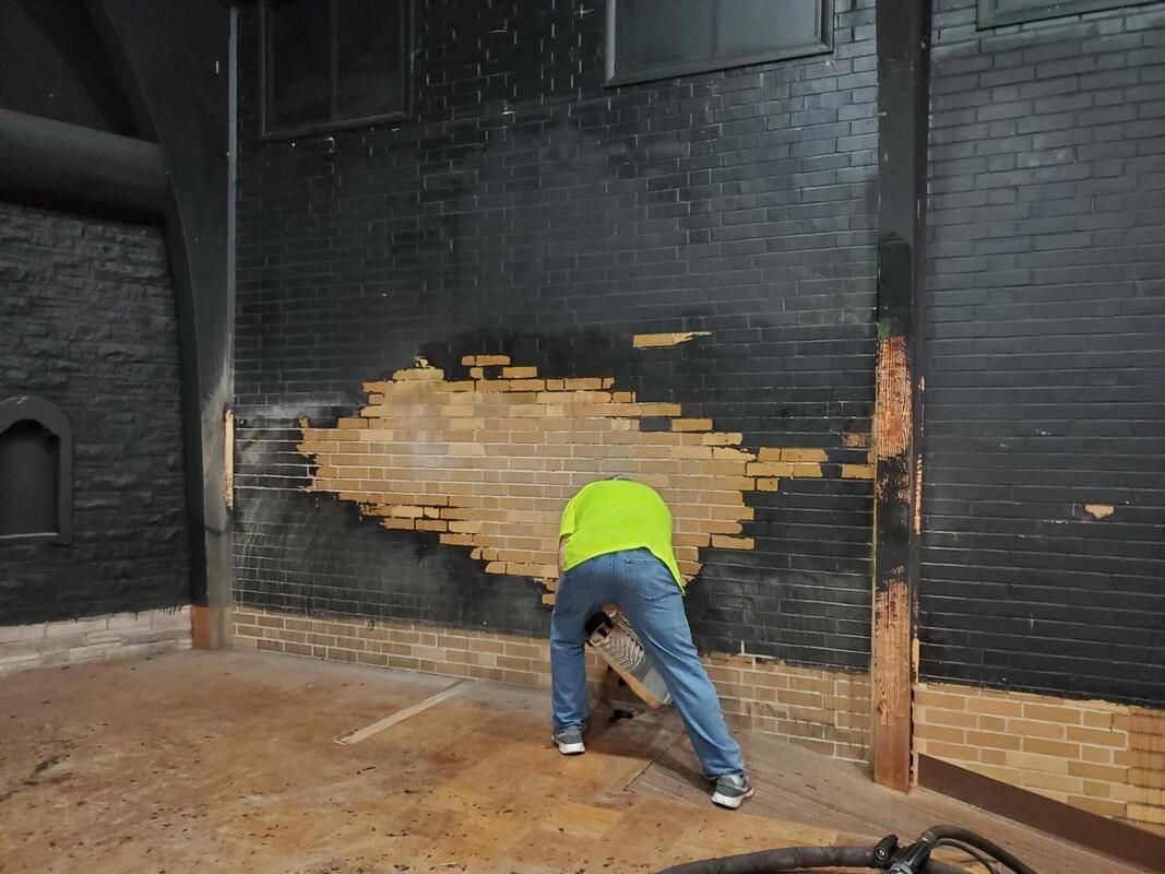 Dry Ice Blasting - Removing Paint from Brick Inside Old Church