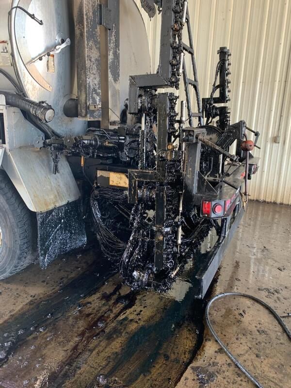 Dry Ice Blasting - Removing Tar from a Roadwork Application Vehicle